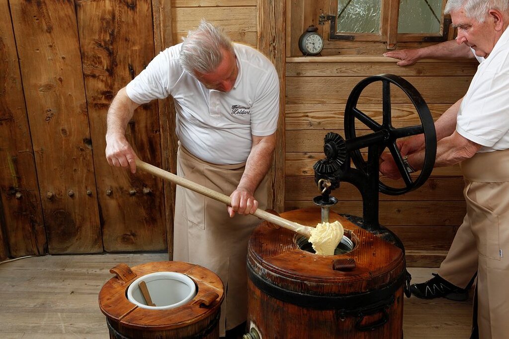 Un tuffo nel passato per riscoprire la tradizione artigianale del gelato come si faceva un tempo. Il laboratorio prevede la realizzazione di gelato artigianale utilizzando macchinari d’epoca, come le classiche sorbettiere a manovella e le prime gelatiere a ghiaccio e sale, guidati dall’esperienza diretta dei gelatieri zoldani, custodi di una delle più antiche tradizioni del gelato italiano.